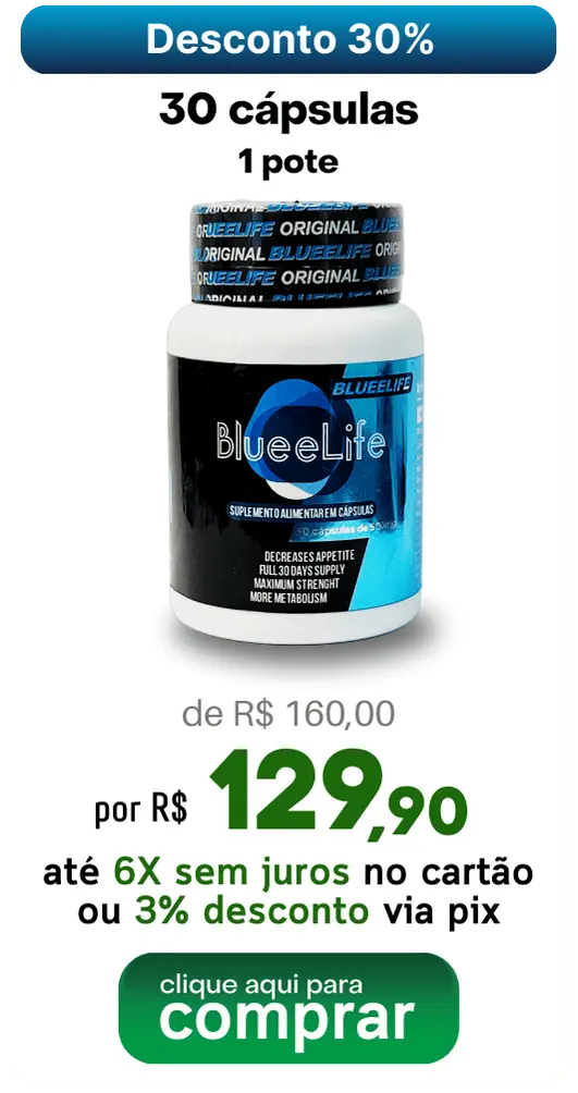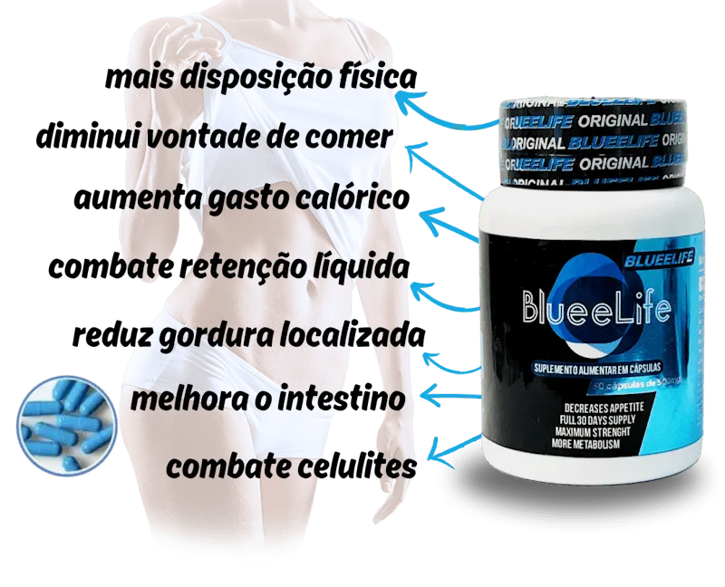 Blueelife é um composto formulado com ingredientes naturais que acelera o metabolismo, aumenta a saciedade, reduz o apetite, desintoxica o organismo, regula o intestino e diminui a retenção de líquidos, potencializando os resultados no processo de emagrecimento.